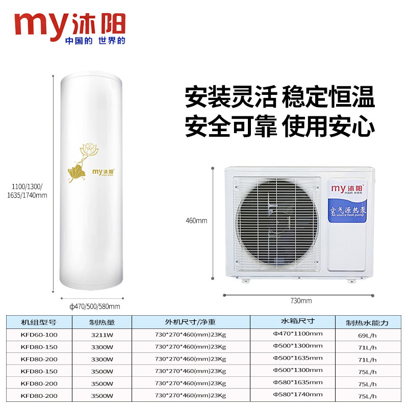 沐阳空气能热泵分体热水器是一款高效节能的家用热水解决方案,采用先进空气源热泵技术,从空气中吸收热量加热水,能效比高达4.0以上,比传统电热水器省电约75%。产品具备智能恒温功能,精准控制水温,告别忽冷忽热,洗浴更舒适。大容量设计满足全家连续用水需求,适合3-6人家庭使用。分体式结构安装灵活,主机与水箱分离,运行安静,节省室内空间。配备智能控制面板,支持定时预约、远程操控,使用便捷。沐阳热水器环保安全,无燃烧、无排放,防冻设计适应多种气候,是追求节能、舒适与品质生活的理想之选。