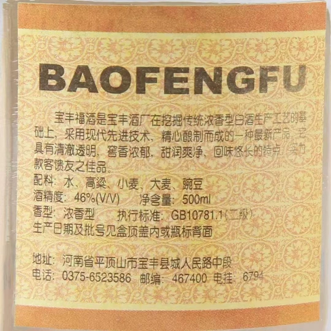 淘宝1999年46度宝丰福酒500ml*1瓶浓香型 纯粮酿造河南名酒