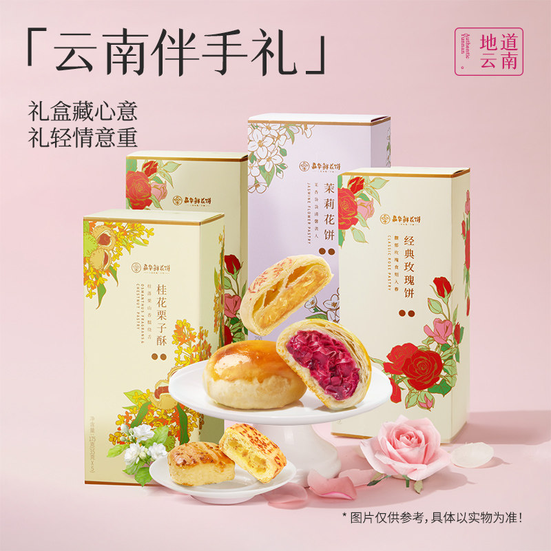 【99元任选4件】嘉华鲜花饼,云南地道特产零食,精选优质高原小麦粉与天然食用玫瑰花瓣,融合传统工艺与现代烘焙技术,打造层次丰富的酥皮口感。内馅绵密香甜,玫瑰花香浓郁,搭配咸香蛋黄,甜而不腻,回味悠长。每一口都是云南风情的味蕾体验。独立小包装,方便携带,无论是自享、送礼还是旅途小食,都是理想之选。现超值优惠,99元即可任选4件,涵盖鲜花饼、蛋黄酥、糕点心等多种美味小吃,性价比超高。尝鲜云南味道,无需远行,一盒尽享!