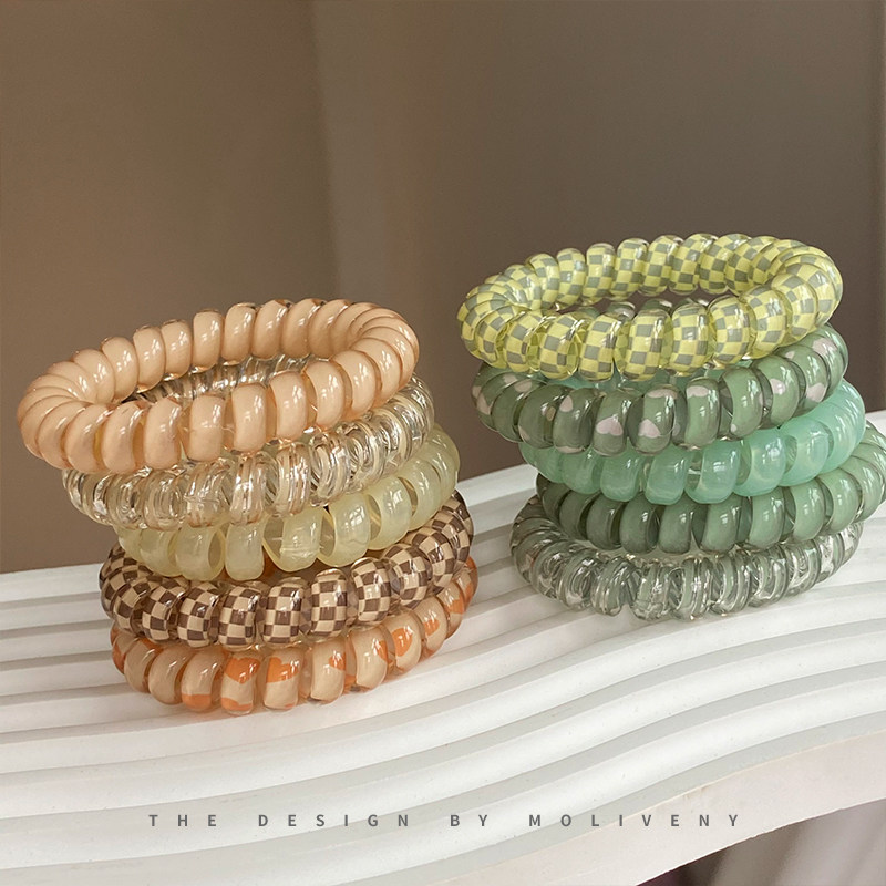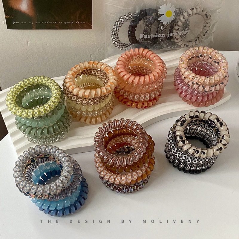 天猫时尚彩色电话线发圈头饰女高弹力耐用绑头发头绳皮筋简约扎头发绳