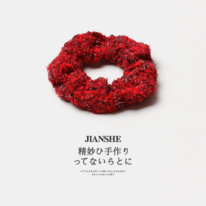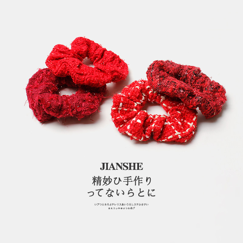淘宝新年红色喜庆毛绒大肠发圈头绳女秋冬毛线编织发绳扎头发皮筋头饰