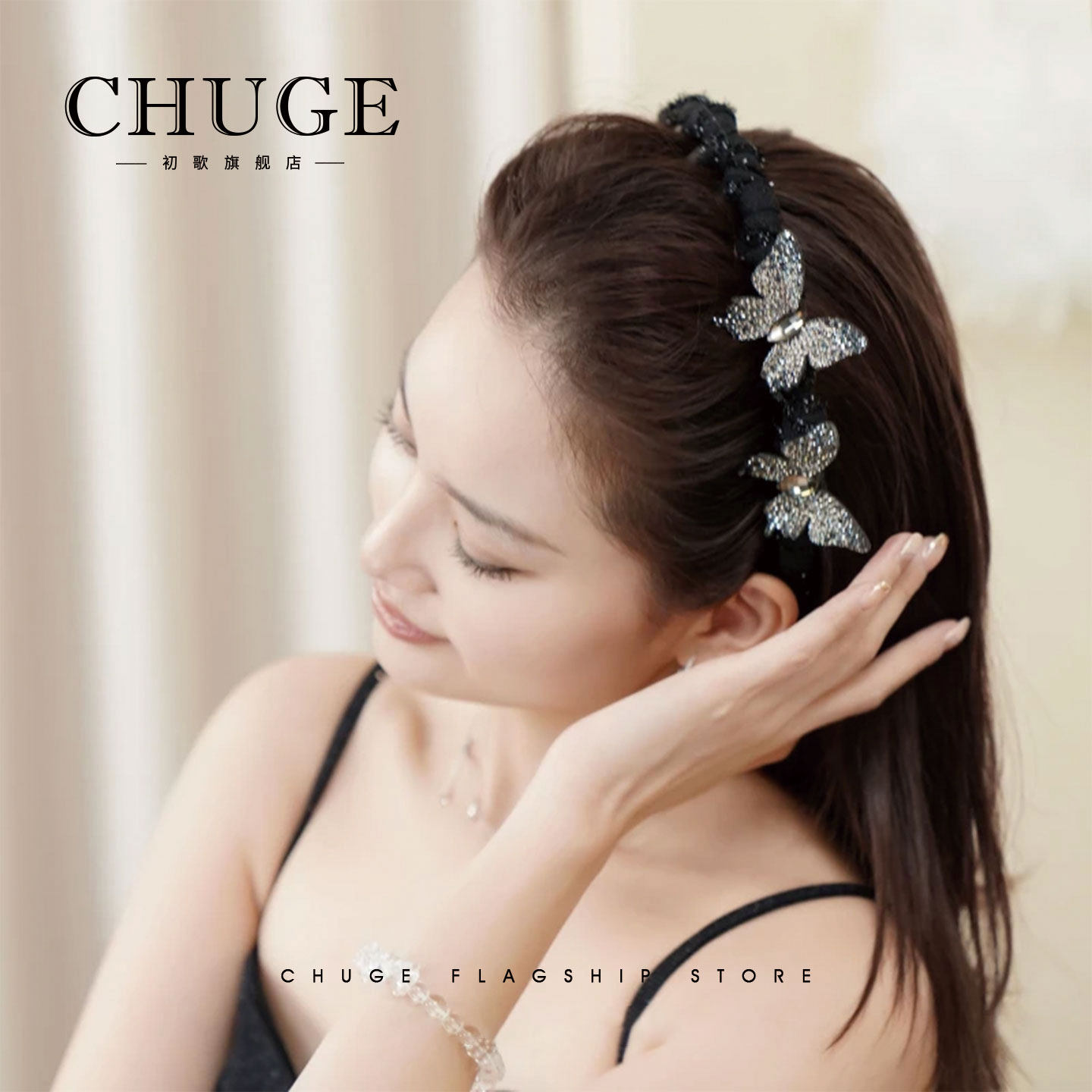 天猫【星光蝴蝶】轻奢立体满钻蝴蝶超闪齿梳多功能发箍气质头箍发饰新