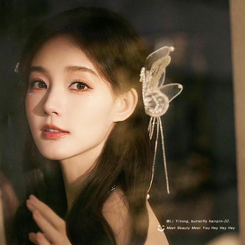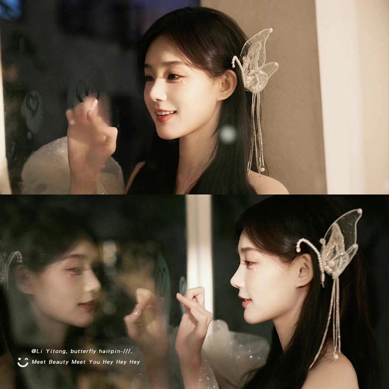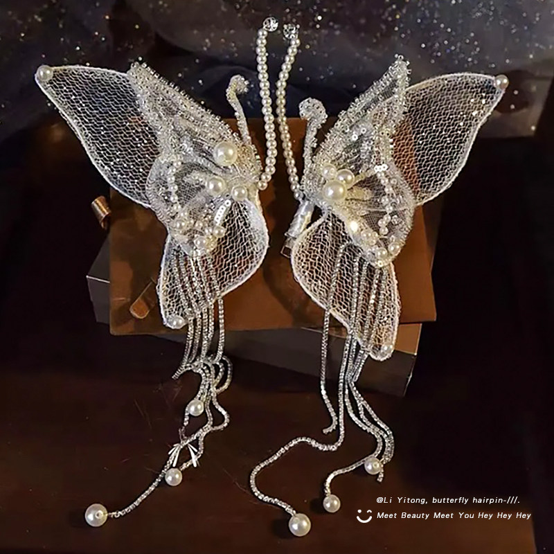 天猫李一桐同款发夹订婚耳挂新娘头饰珍珠蝴蝶翅膀流苏发卡女2025新款