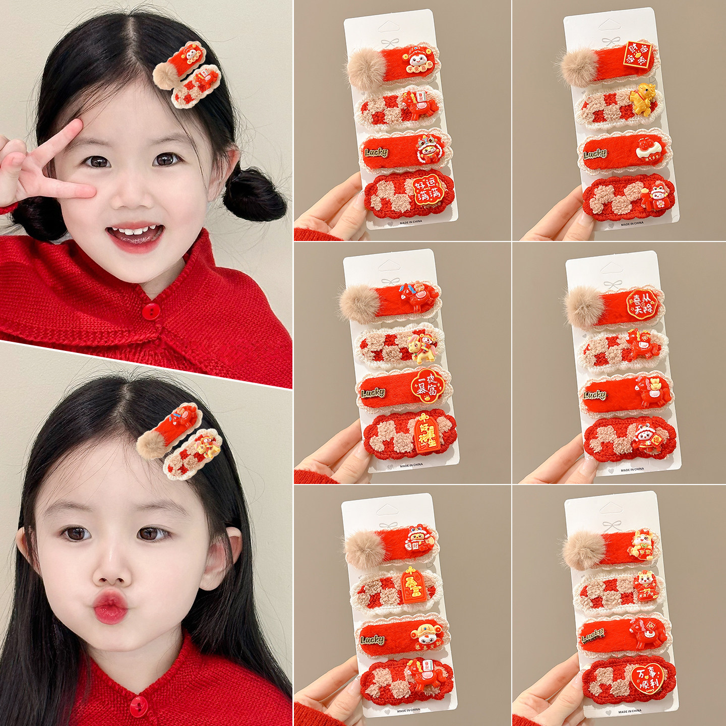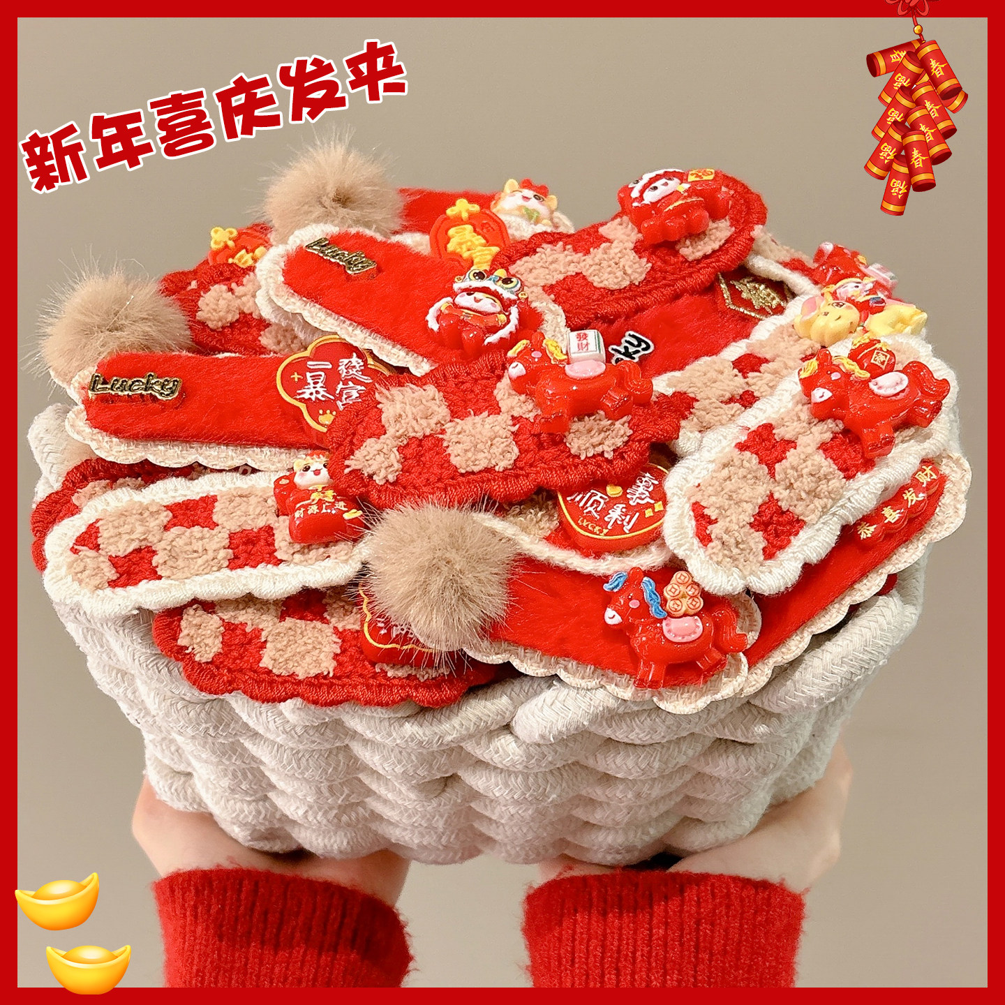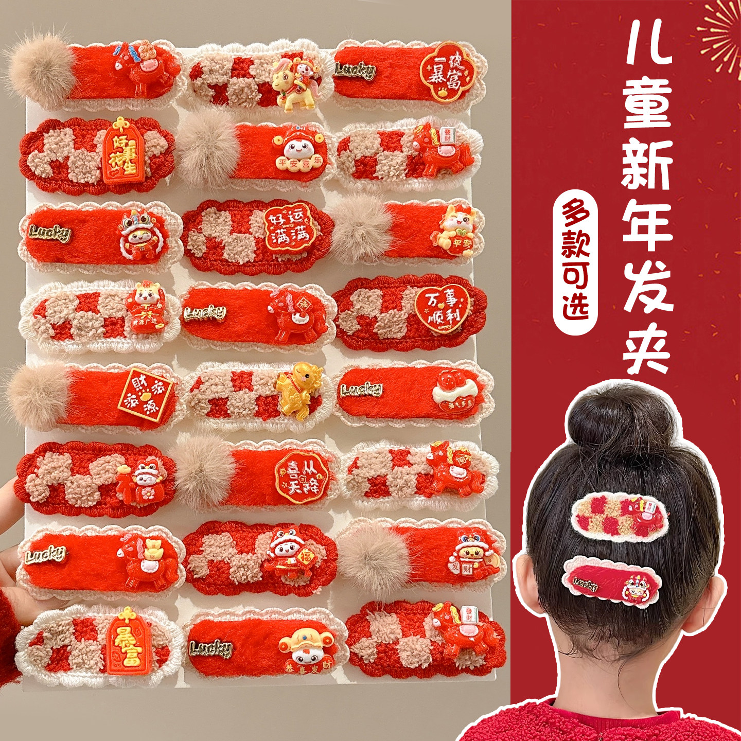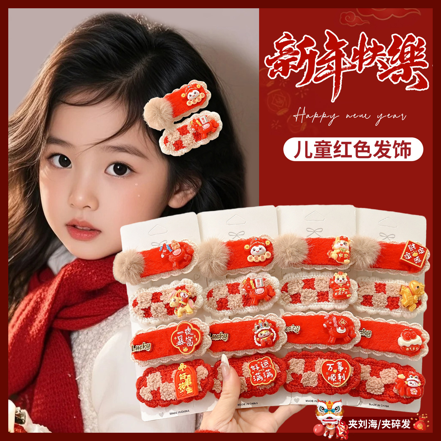 天猫儿童碎发发夹新年红色毛绒刘海侧边边夹女童过年喜庆夹子头饰发卡