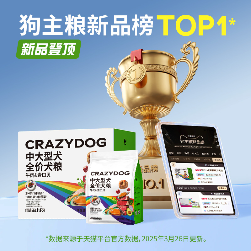 天猫疯狂小狗冻干狗粮彩虹魔方牛肉青口贝中大型金毛拉布拉多成犬10kg
