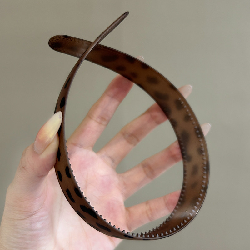 2025新款豹纹塑料发箍,融合时尚与实用,专为现代女性打造。采用环保柔韧塑料材质,轻盈舒适不夹头,搭配经典野性豹纹印花,彰显个性魅力。锯齿防滑设计,稳固贴合各种发量,无论是日常通勤、居家护肤,还是运动出行,都能轻松固定秀发,避免碎发干扰。宽边造型兼具修饰脸型效果,简约中透出高级感。多场景适用——洗脸、敷面膜、扎发造型皆宜,是兼具颜值与功能的多功能头饰。2025年潮流必备单品,让每一次造型都自信出彩。