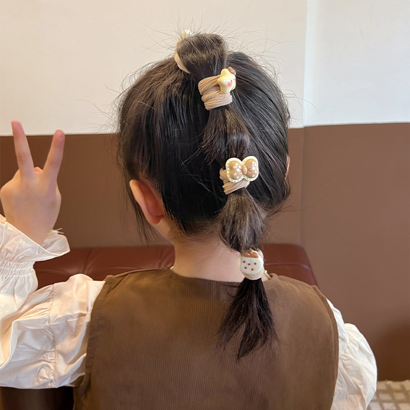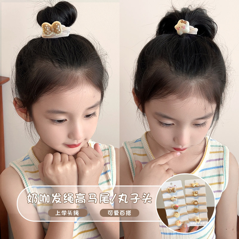 天猫儿童奶咖头绳女童高马尾发绳学生扎头发发圈高弹力不伤发皮筋头饰