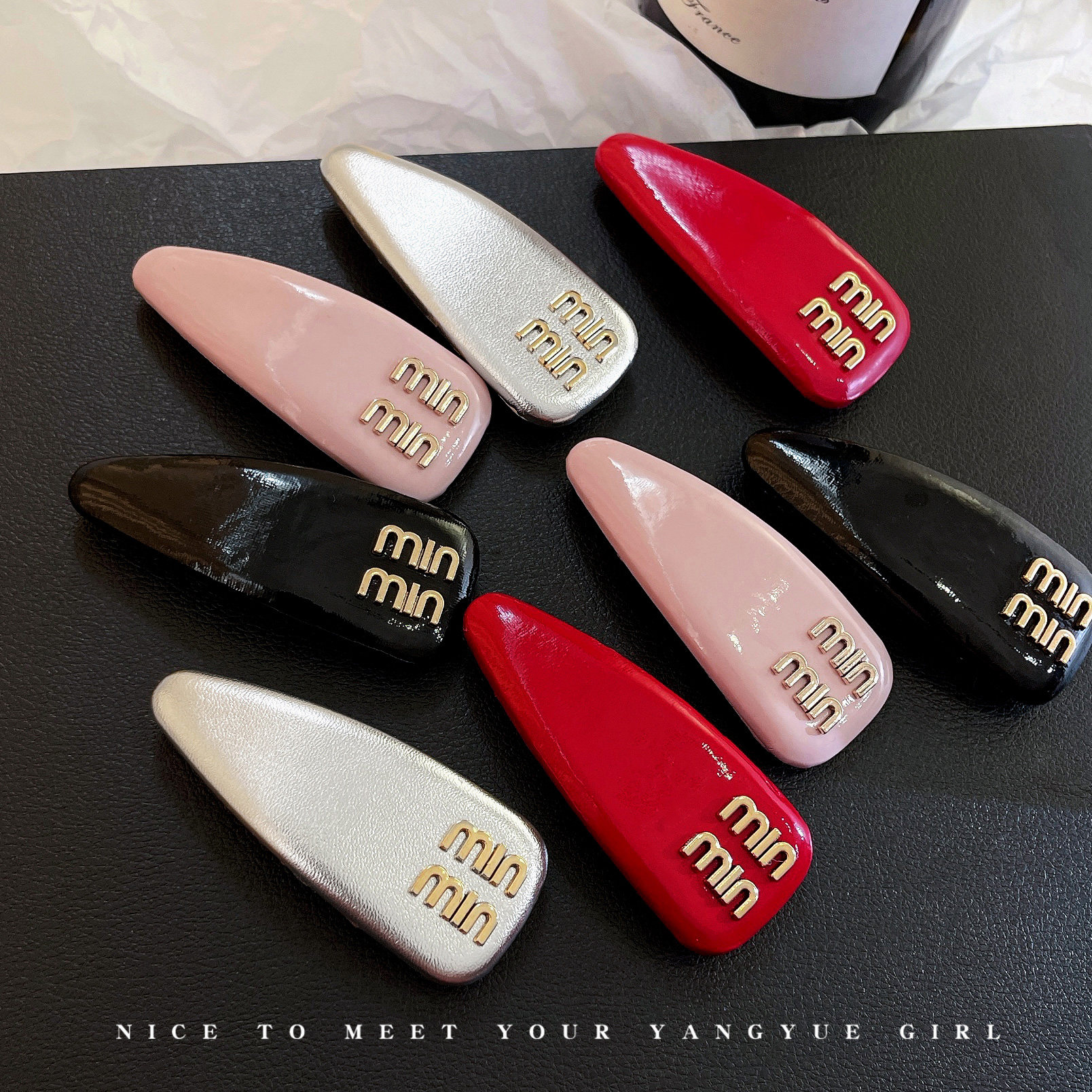 天猫新年红色皮质发夹女甜酷前额刘海夹侧边夹百搭弹簧夹过年发卡头饰
