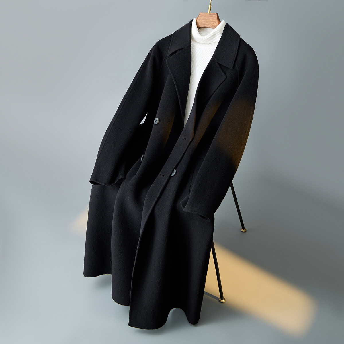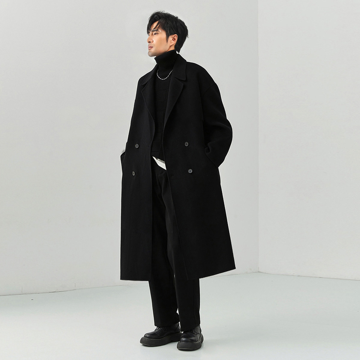 淘宝秋冬羊毛双面呢大衣男士西装领毛呢长款过膝垫肩呢子韩式风衣外套