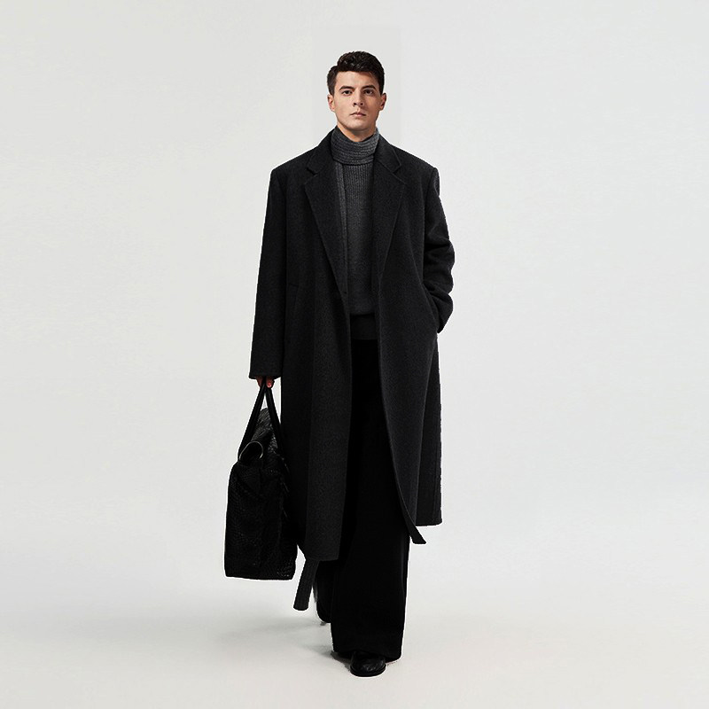 淘NineteenAutumn男士毛呢大衣中长款加棉加厚垫肩韩系风衣呢子外套