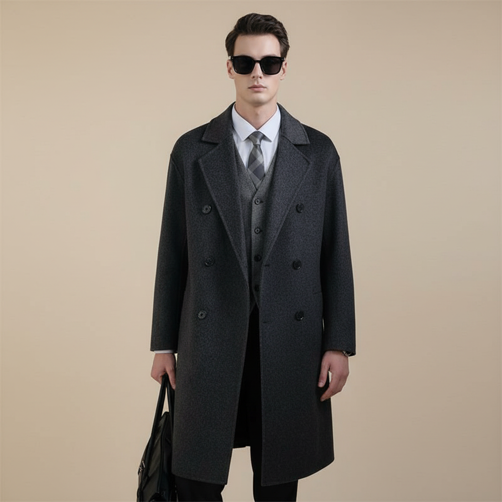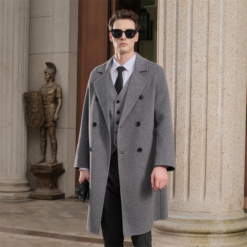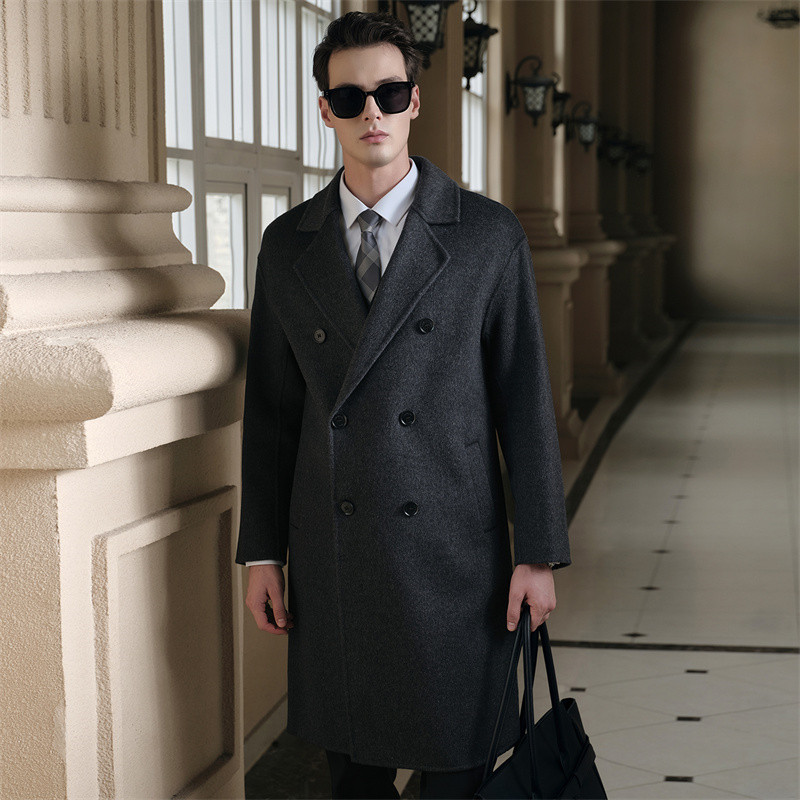 淘宝【100%羊毛】男士秋冬双面呢子大衣加厚长款西装领外套羊绒风衣
