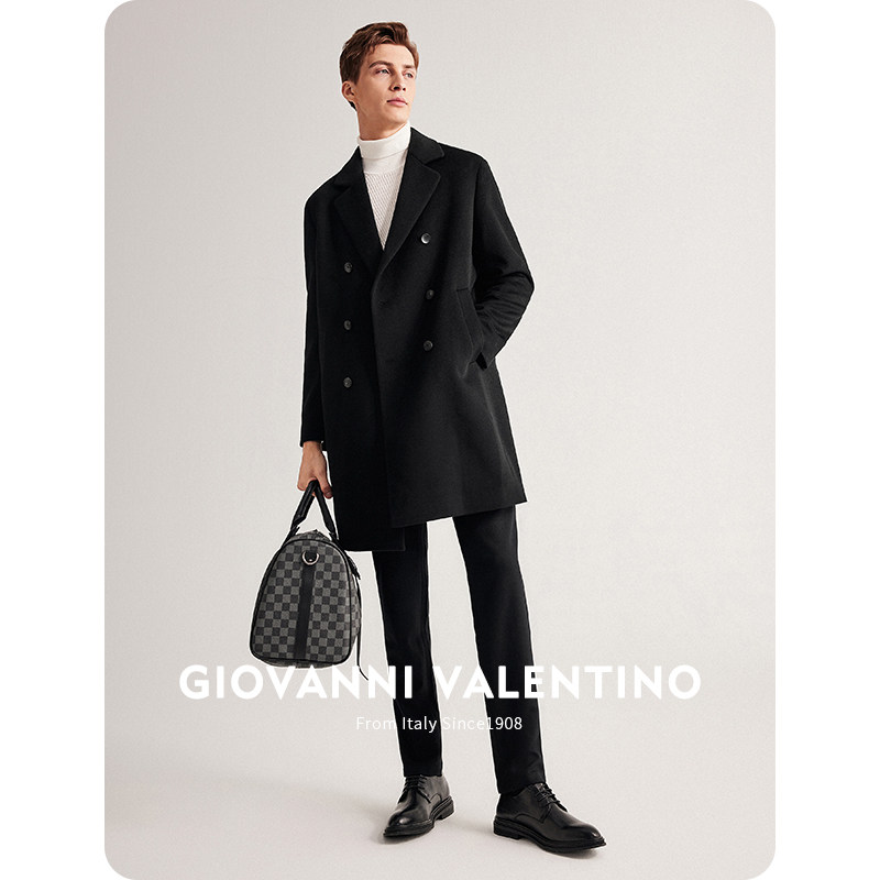 天猫【全羊毛】GIOVANNI VALENTINO中长款毛呢大衣男秋冬休闲风衣外套