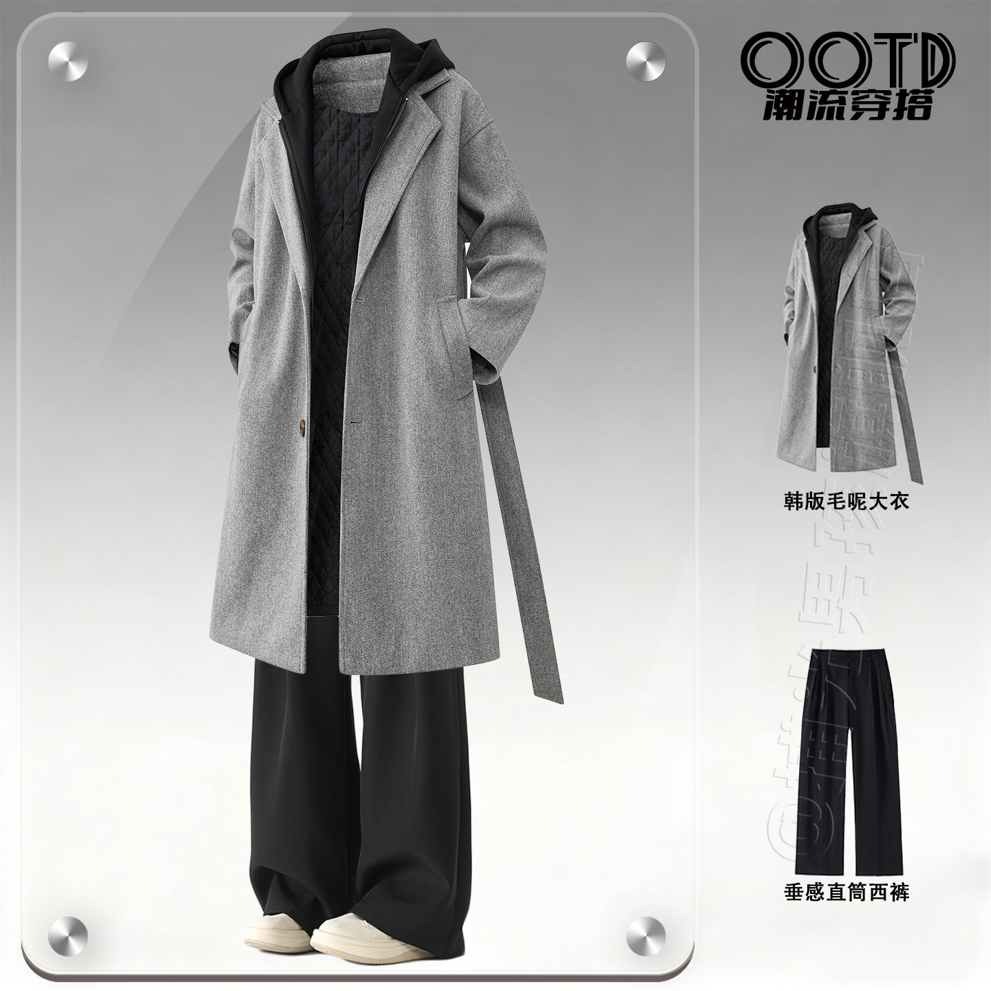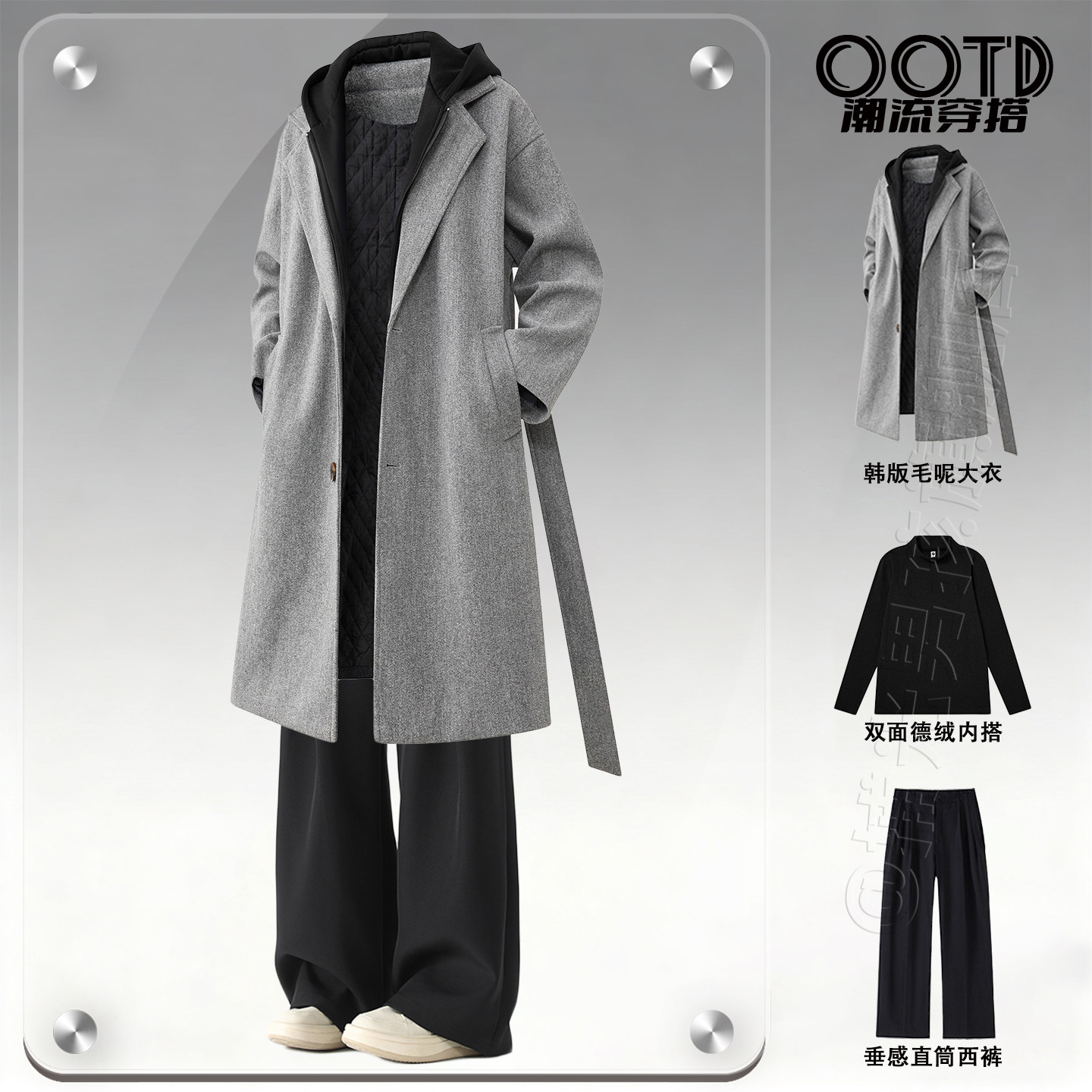 淘NineteenAutumn男士毛呢大衣中长款加棉加厚垫肩韩系风衣呢子外套