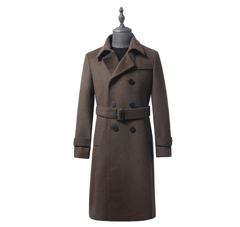 淘宝定做新款毛呢大衣男加厚羊绒长款双排扣修身过膝风衣加肥加大外套