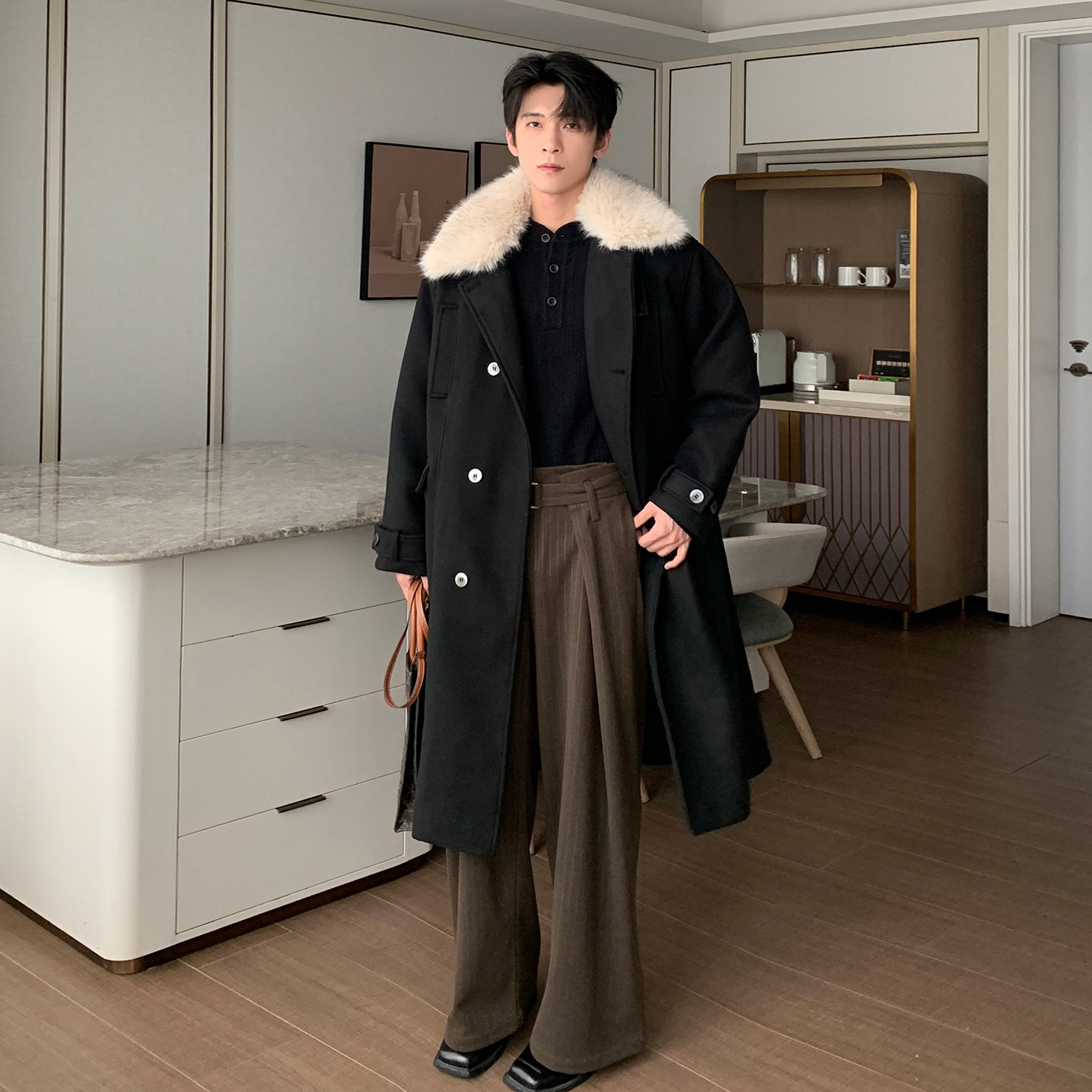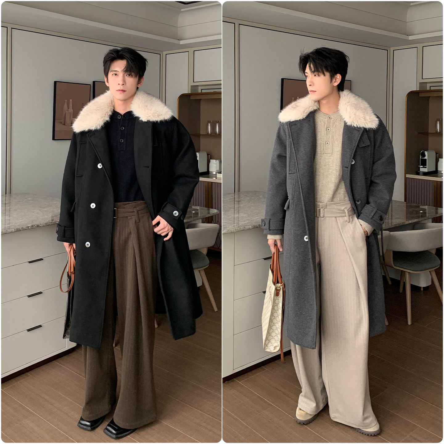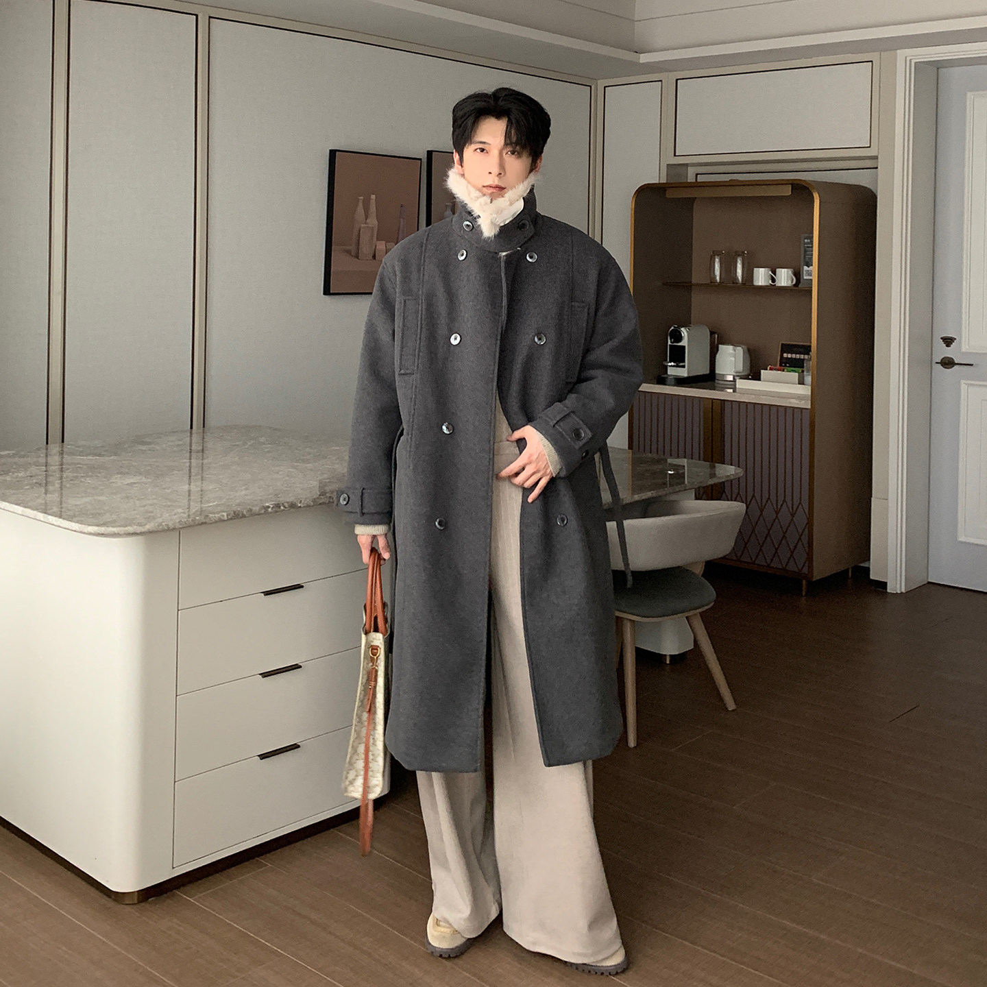淘MRCYC长款毛呢大衣男秋冬季韩系宽松高级感加棉加厚呢子风衣外套