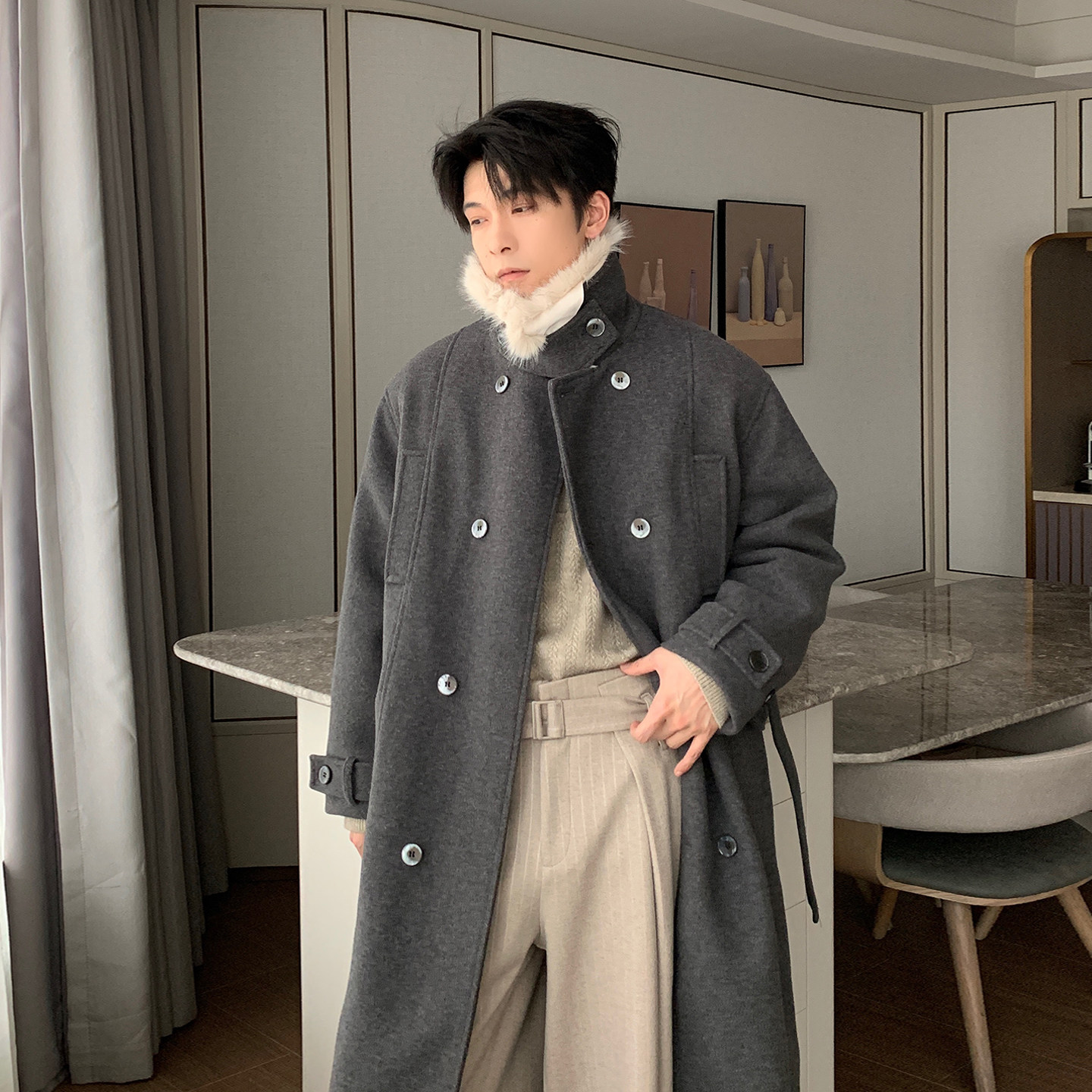 淘NineteenAutumn男士毛呢大衣中长款加棉加厚垫肩韩系风衣呢子外套