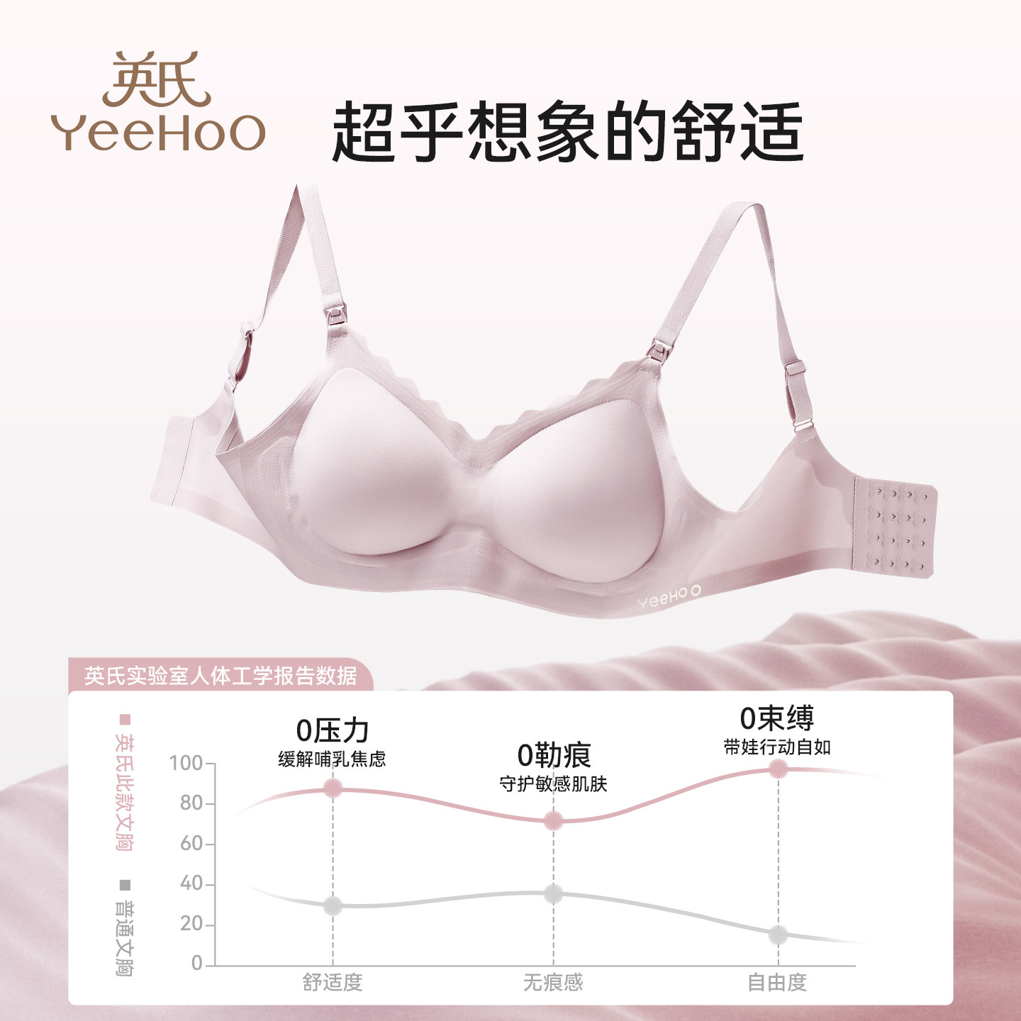 天猫英氏孕妇哺乳内衣产后喂奶专用可睡觉穿防下垂大码桑蚕丝杯垫胸罩