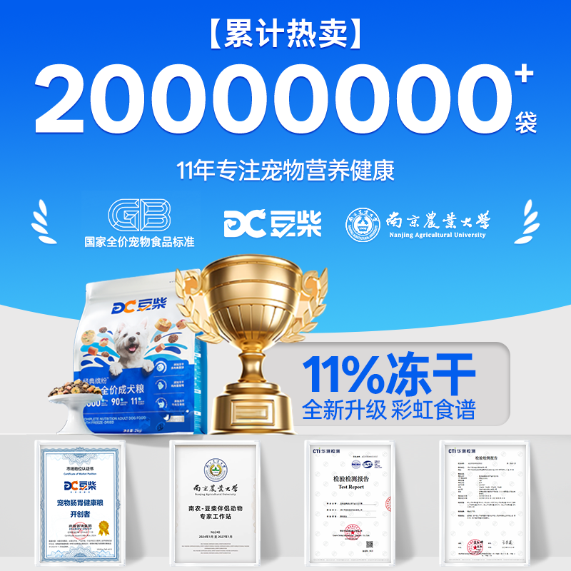 天猫【彩虹冻干】豆柴通用型狗粮缤纷三拼多维营养成犬中大型小型犬粮