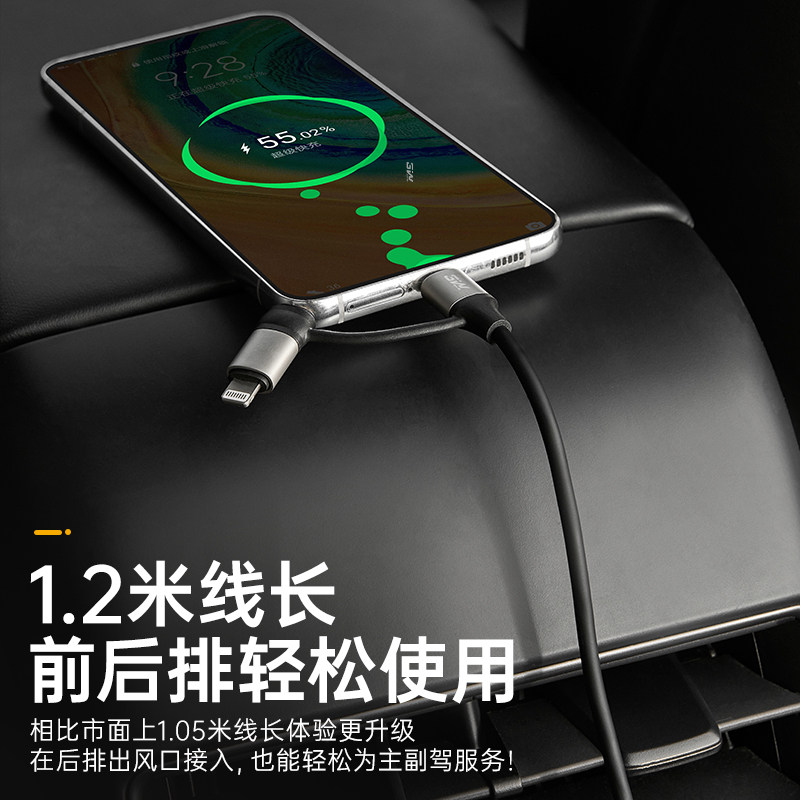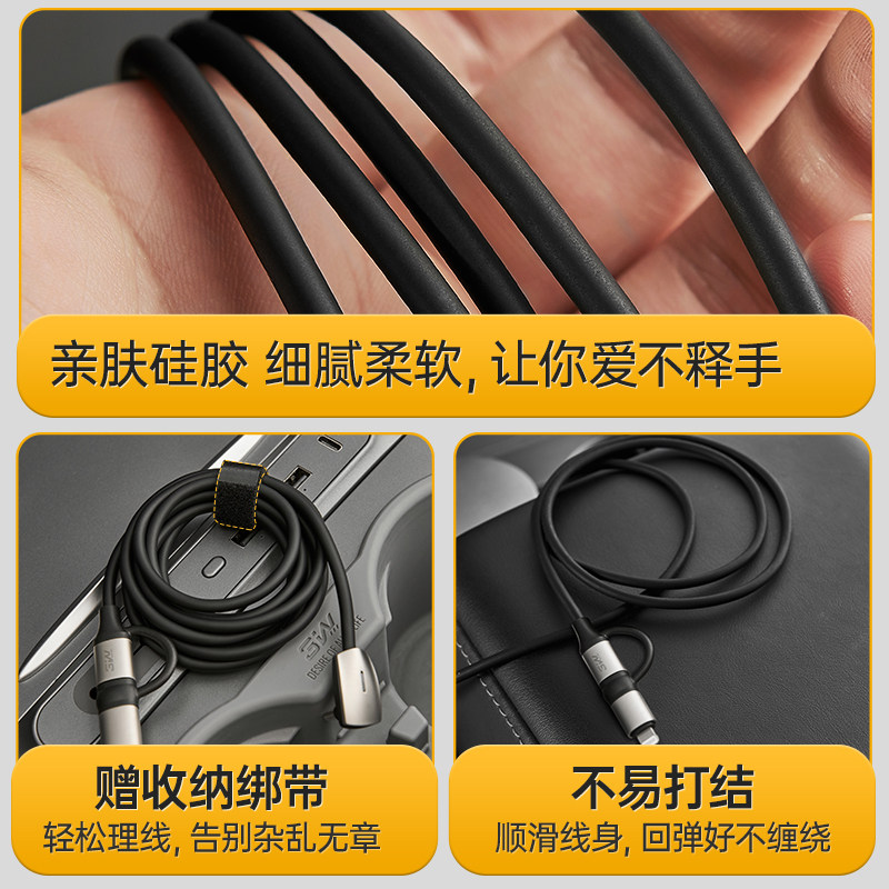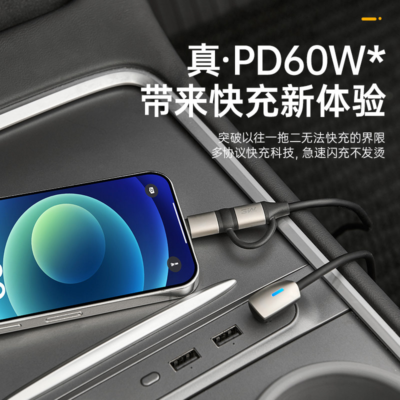 天品胜充电线三合一数据线快充一拖三车载100W伸缩多功能三头适用苹果iPhone17安卓typec手机平板ipad多头66W