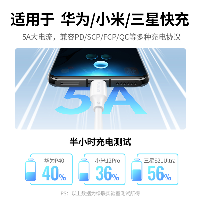 天猫绿联typec数据线双头快充5apd100w手机车载适用苹果17/16iPhone15ipad华为荣耀小米笔记本电脑平板ctoc充电线