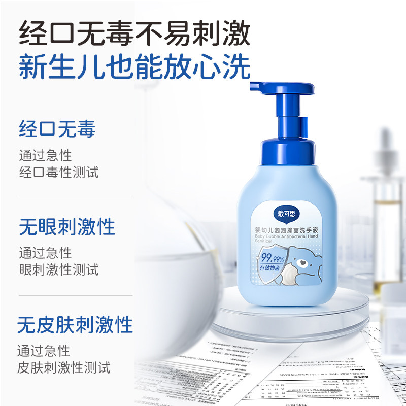 【李佳琦直播间新年礼物专场】特别推荐戴可思婴幼儿按压泡沫抑菌洗手液!专为宝宝娇嫩肌肤设计,采用温和配方,不含酒精、香精和刺激性成分,有效抑菌同时呵护小手健康。独特按压泡沫设计,一按即出绵密泡沫,孩子爱上洗手,清洁更轻松。pH值接近肌肤,洗后不干燥、不紧绷,适合全家日常使用。新年期间,为孩子准备一份健康好礼,从勤洗手开始。戴可思专注母婴安全护肤,品质值得信赖。现在下单还享直播间专属优惠,限量赠品等你拿!守护家人健康,从每一次安心洗手开始,让爱与洁净伴你度过温馨新年。