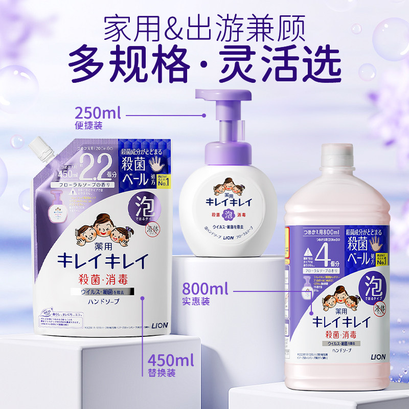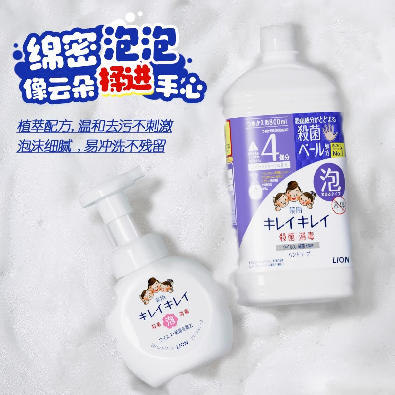 天猫LION狮王泡沫洗手液植萃温和清洁弱酸性易冲洗保湿大容量全家适用