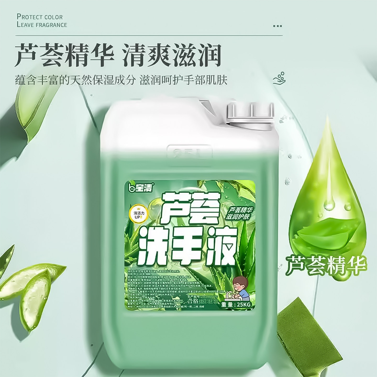 本款芦荟洗手液为商用大容量装,净重25公斤(约50斤),专为酒店、商场、餐厅、学校等公共场所设计。采用温和配方,富含天然芦荟精华,有效清洁双手的同时滋润肌肤,避免干燥。具备强效抑菌消毒功能,可快速杀灭多种常见细菌,保障公共卫生安全。大桶装设计便于分装至洗手液 dispenser,降低采购与更换频率,经济实用。产品无刺激性气味,符合环保标准,适合高频次使用场景。是各类商业场所卫生管理的理想选择,兼顾高效清洁与成本节约,提升整体卫生水平。
