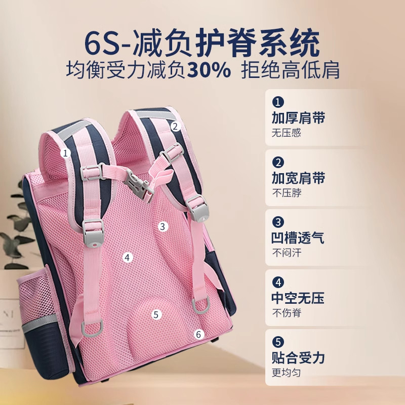 这款专为1-6年级小学生设计的轻便护脊书包,兼顾男女童使用需求,采用人体工学S型肩带与加厚透气背垫,有效分散背部压力,呵护脊柱健康。书包整体轻盈,精选防水耐磨面料,雨天出行无忧,日常清洁更便捷。多隔层科学分区,轻松收纳课本、文具和水杯,培养孩子整理习惯。胸前与侧边设有反光条,提升夜间行走安全性。简约时尚的外观搭配清新配色,满足女生甜美风格与男生活力气质。无论是日常上学还是短途出行,这款减负透气书包都是孩子成长路上的贴心伙伴。