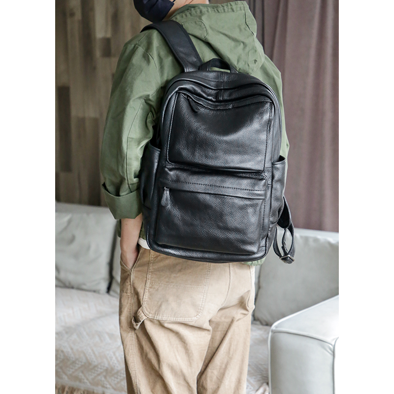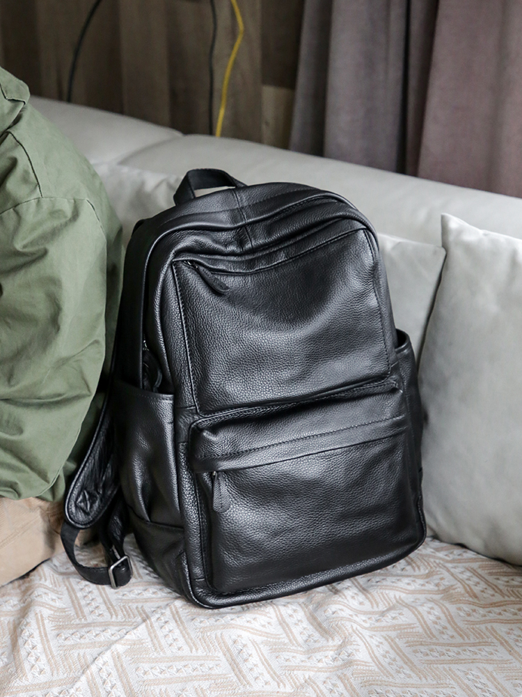 古造自然摔头层牛皮双肩包,精选优质头层牛皮,采用自然摔纹理工艺,质感细腻,耐磨耐刮,彰显男士沉稳气质。包型简约大方,线条利落,兼具休闲与商务风格,轻松驾驭日常通勤、短途旅行或校园生活。内部结构合理,设有电脑隔层,可容纳15.6英寸笔记本,搭配多功能收纳袋,物品井然有序。宽厚透气肩带设计,背负舒适减压。百搭黑、棕等经典色系,轻松搭配各类服饰,是追求品质与实用性的男士理想之选。真皮材质随使用时间愈显光泽,历久弥新。