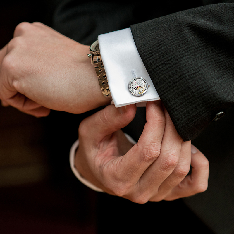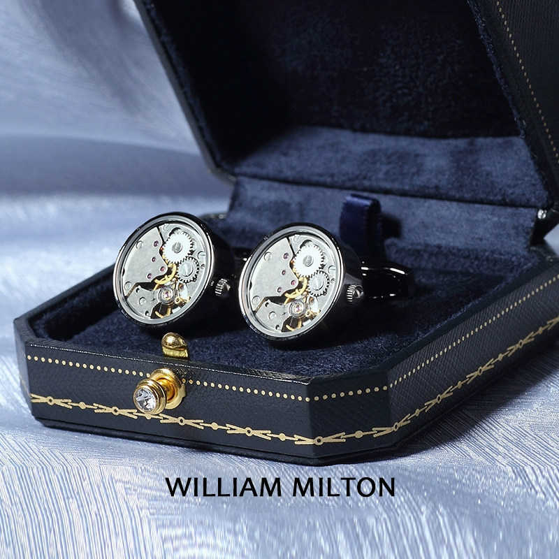 天猫WILLIAM MILTON可转动机械齿轮袖扣男法式机芯袖口钉定制轻奢礼物