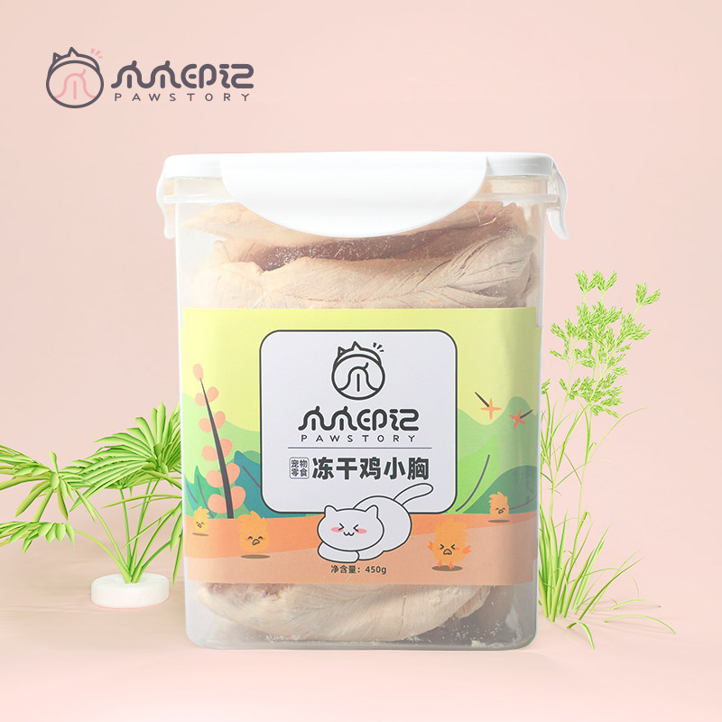 天猫爪爪印记 鸡胸肉冻干猫零食生骨肉鸡肉粒磨牙棒宠物主食拌粮 桶装