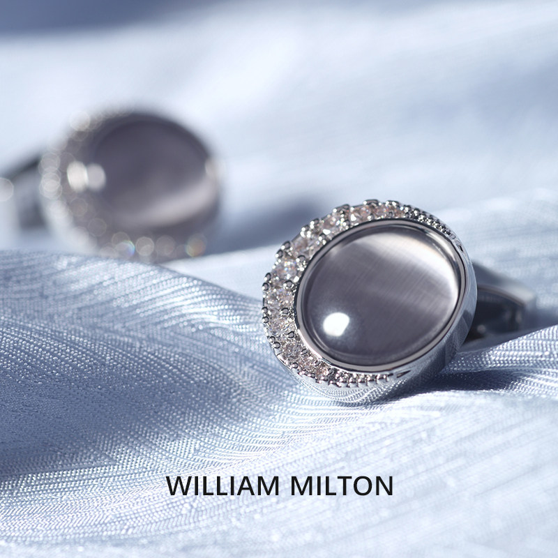 天猫WILLIAM MILTON银辉映月轻奢猫眼石袖扣男高端配饰袖口钉定制礼物