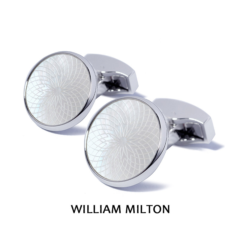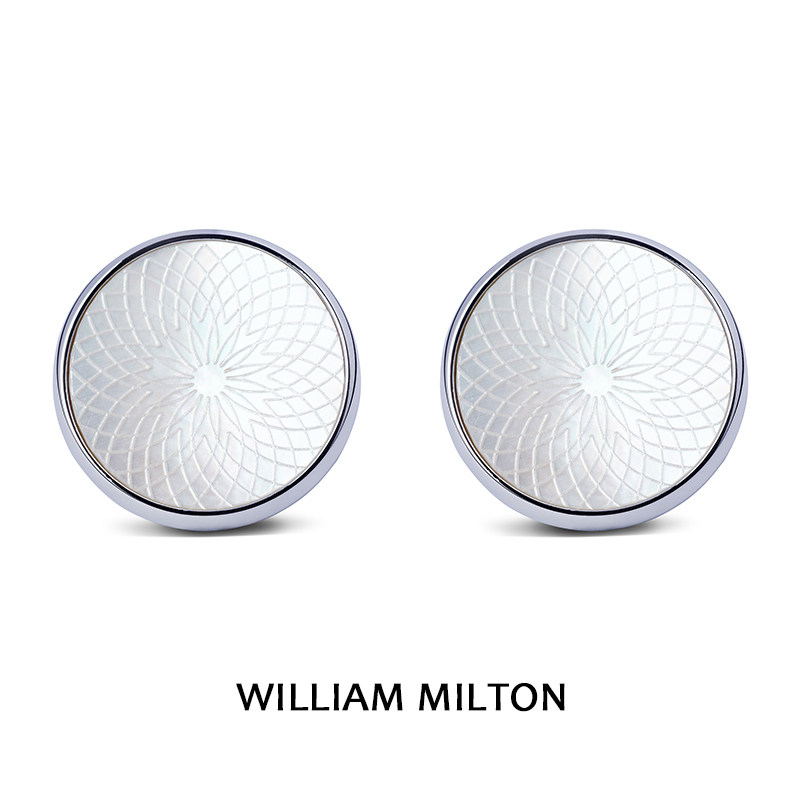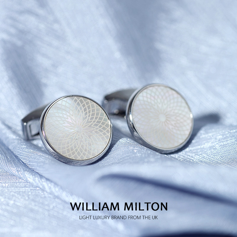 天猫WILLIAM MILTON轻奢珍珠贝母雕花袖扣男士定制西装袖口钉高端礼盒