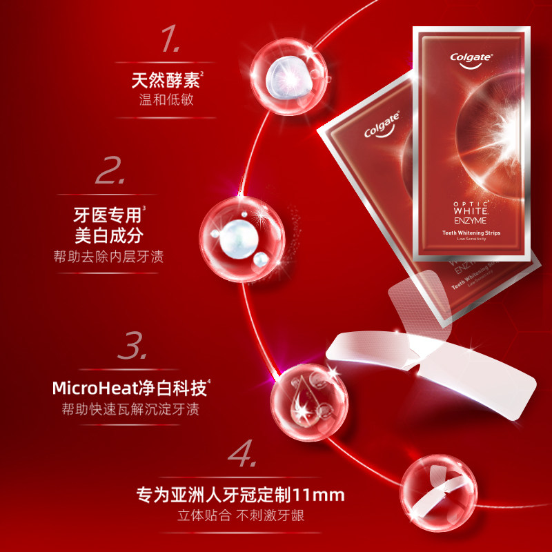 天猫高露洁美白酵素牙贴14对烟亮白牙齿渍洁白净白光感白低敏进口牙贴