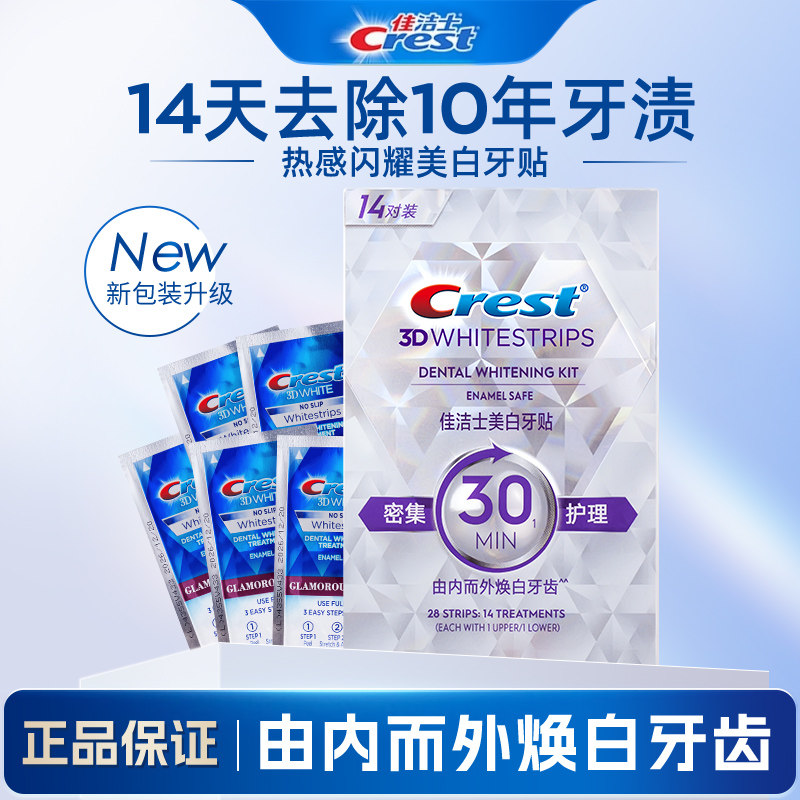 淘佳洁士美白闪耀炫白牙贴女美国版crest 3d white速效牙齿去黄14贴