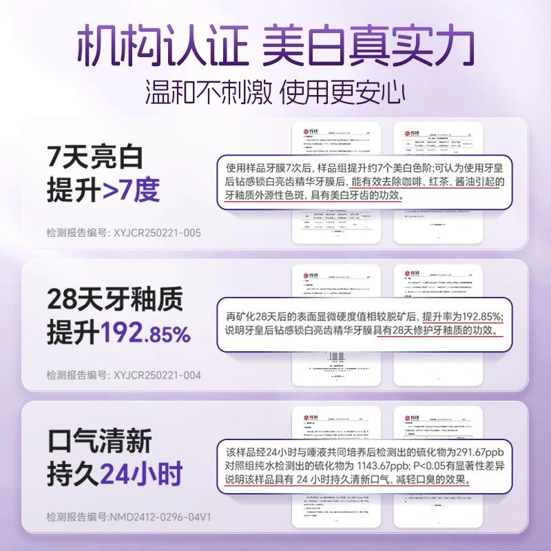 淘宝牙皇后钻感亮齿锁白精华牙膜美白洁白牙贴去黄去牙渍强效清洁贴片