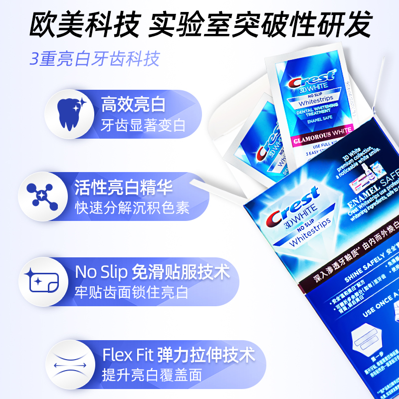佳洁士美白闪耀炫白牙贴女美国版crest 3d white速效牙齿去黄14贴