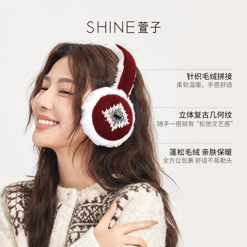 天猫SHINE萱子饰品费尔岛毛绒耳罩保暖耳捂防寒加厚耳套防风新年配饰