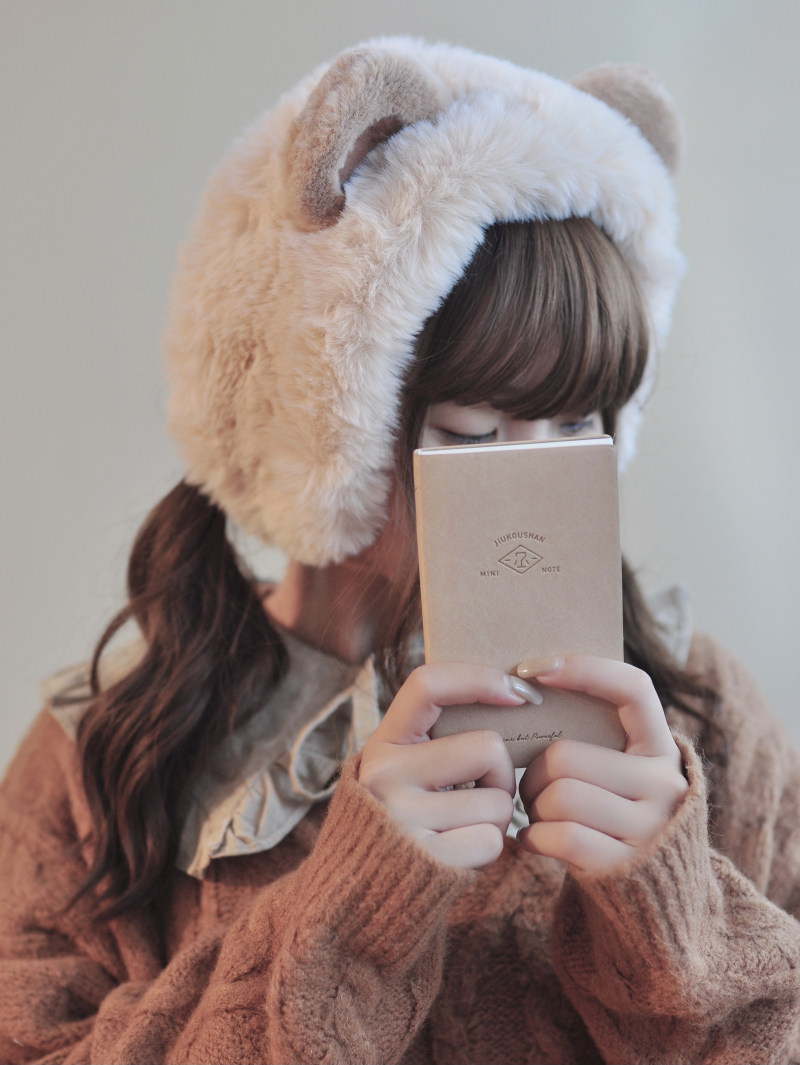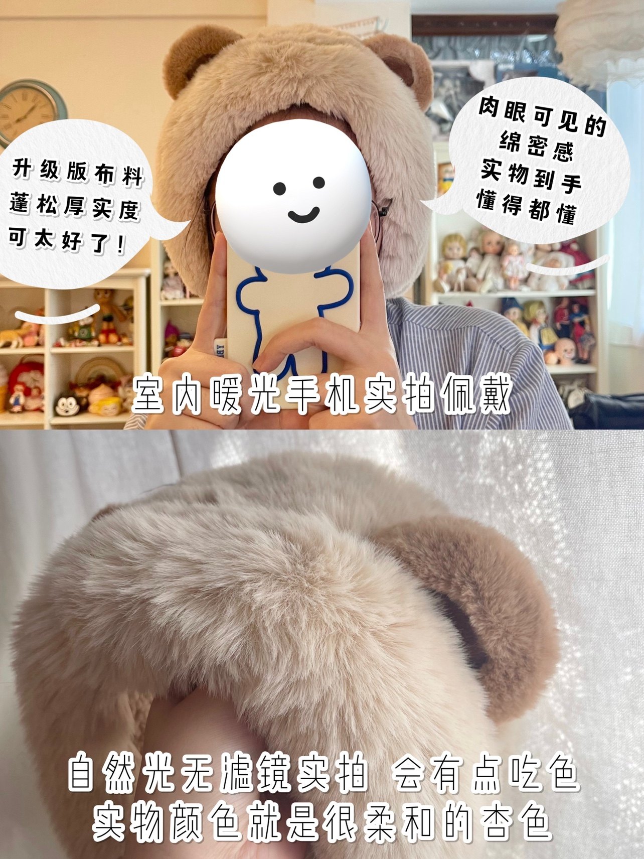淘宝本守造原创手工熊耳小熊发箍型耳罩耳套仿皮草秋冬保暖杏色