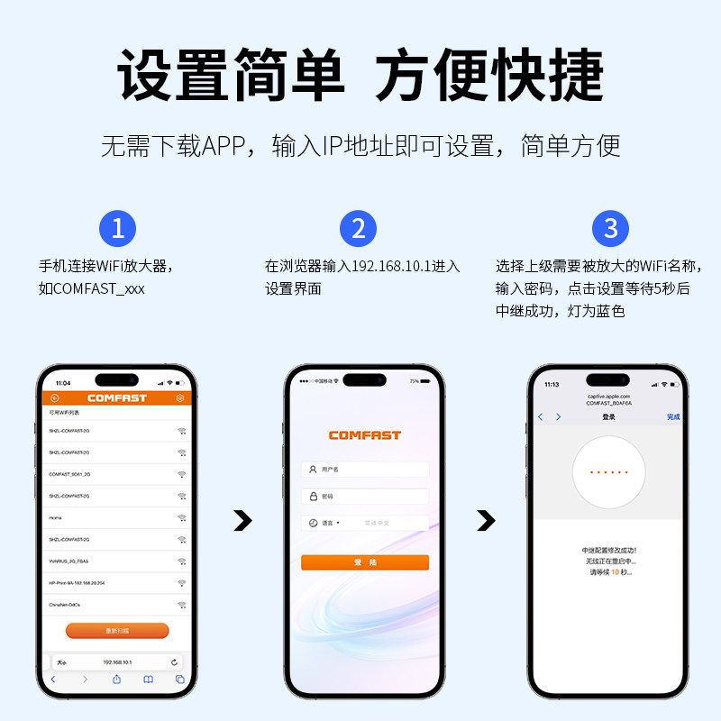 COMFAST无线wifi信号放大器增强扩大接收家用路由器无线网络中继器远距离拓展全屋覆盖加强中继网络CF-301