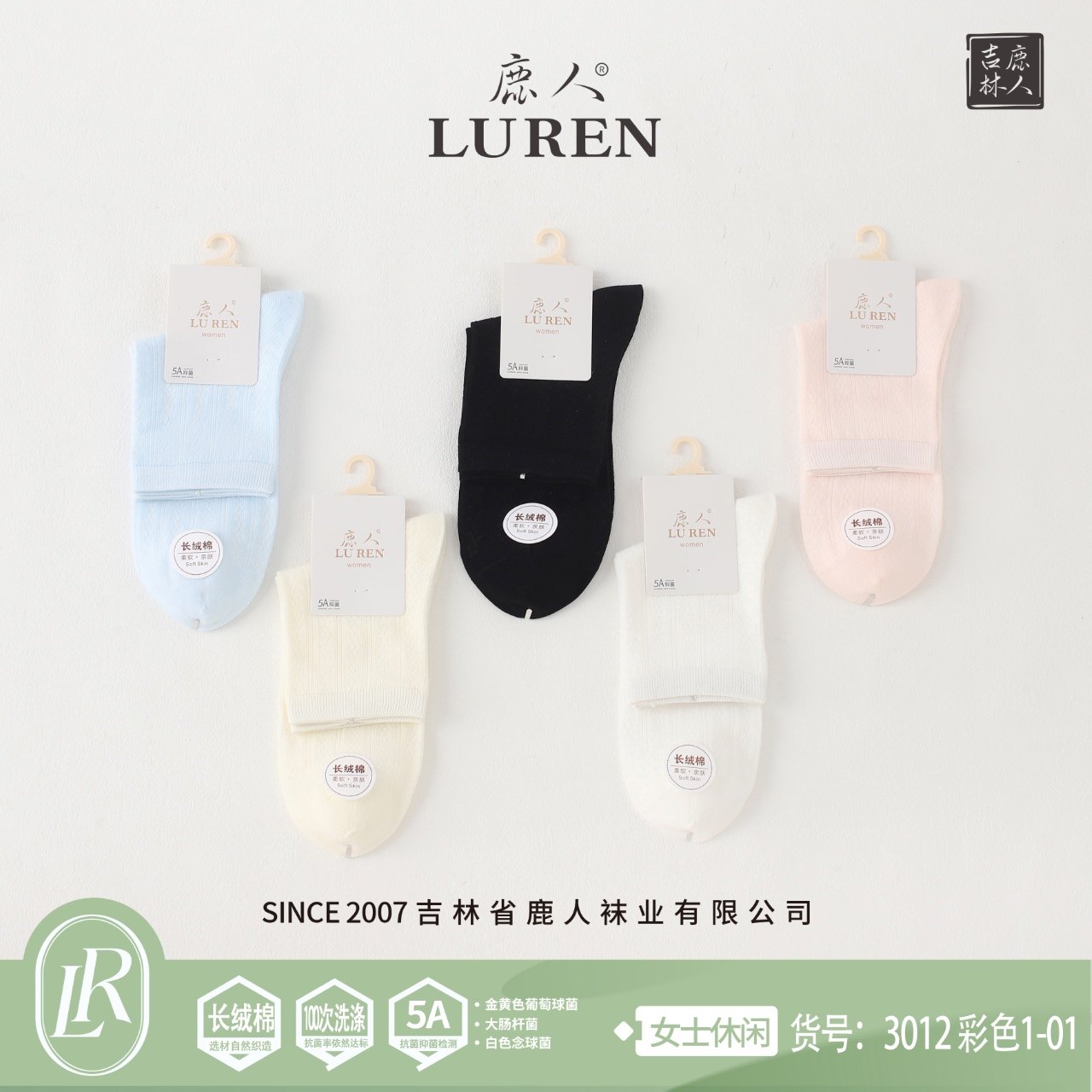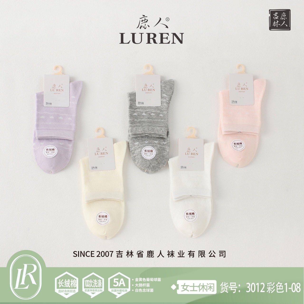 淘宝鹿人袜子夏季薄款无骨袜女袜中筒休闲运动棉袜学生袜简约提花3012