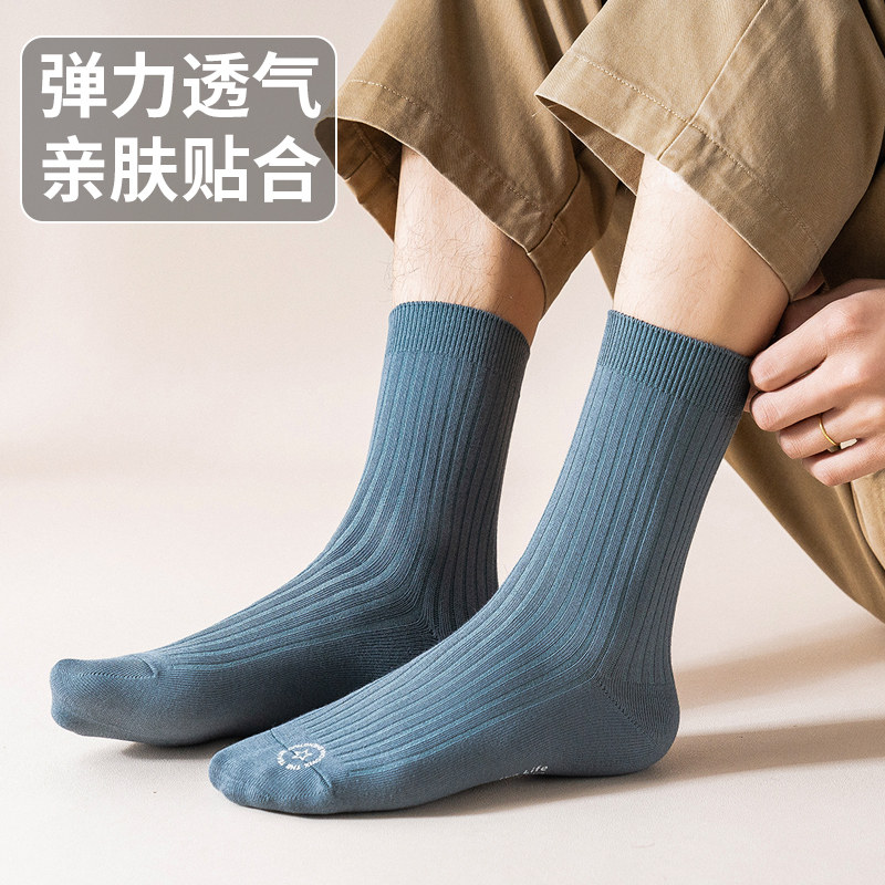 宜而爽袜子男士中筒袜2025新款秋季棉袜吸汗防臭运动休闲长袜夏季