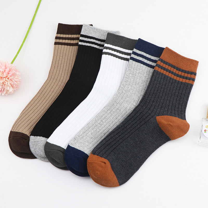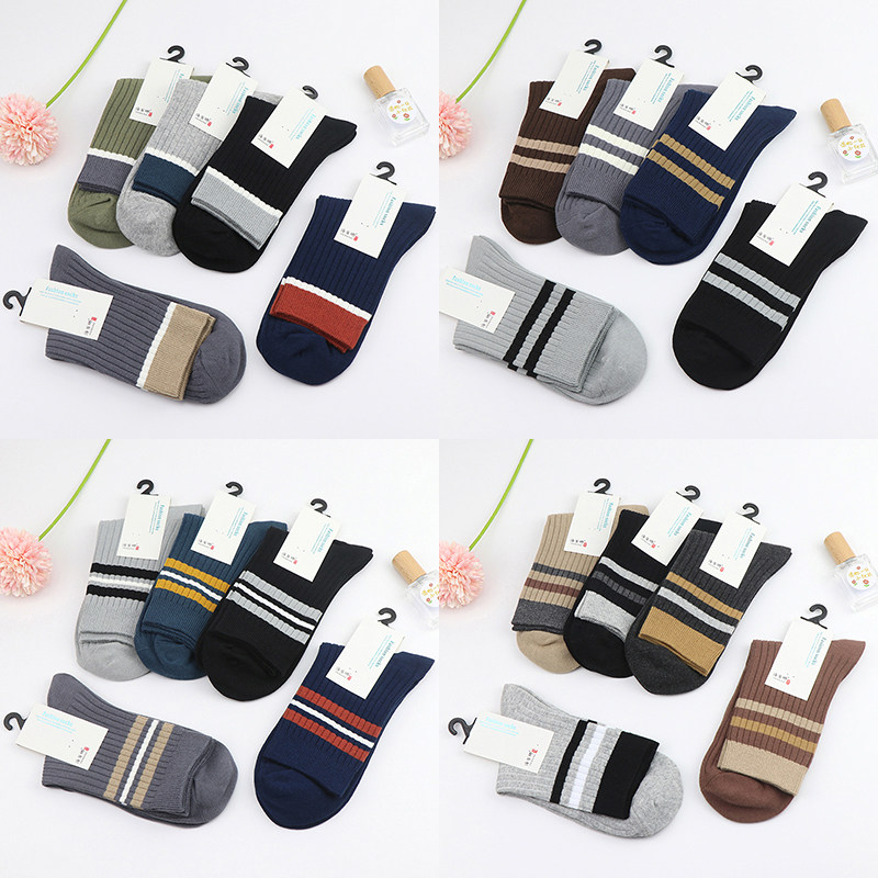 淘司纶祺秋冬款双针织中高筒男袜细条纹休闲防臭袜子加厚透气棉袜