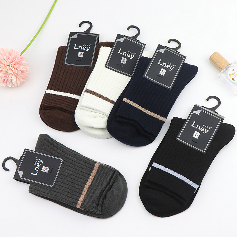 淘宝男士秋冬中筒棉袜防臭吸汗保暖双针细条纹高品质运动休闲长腰男袜