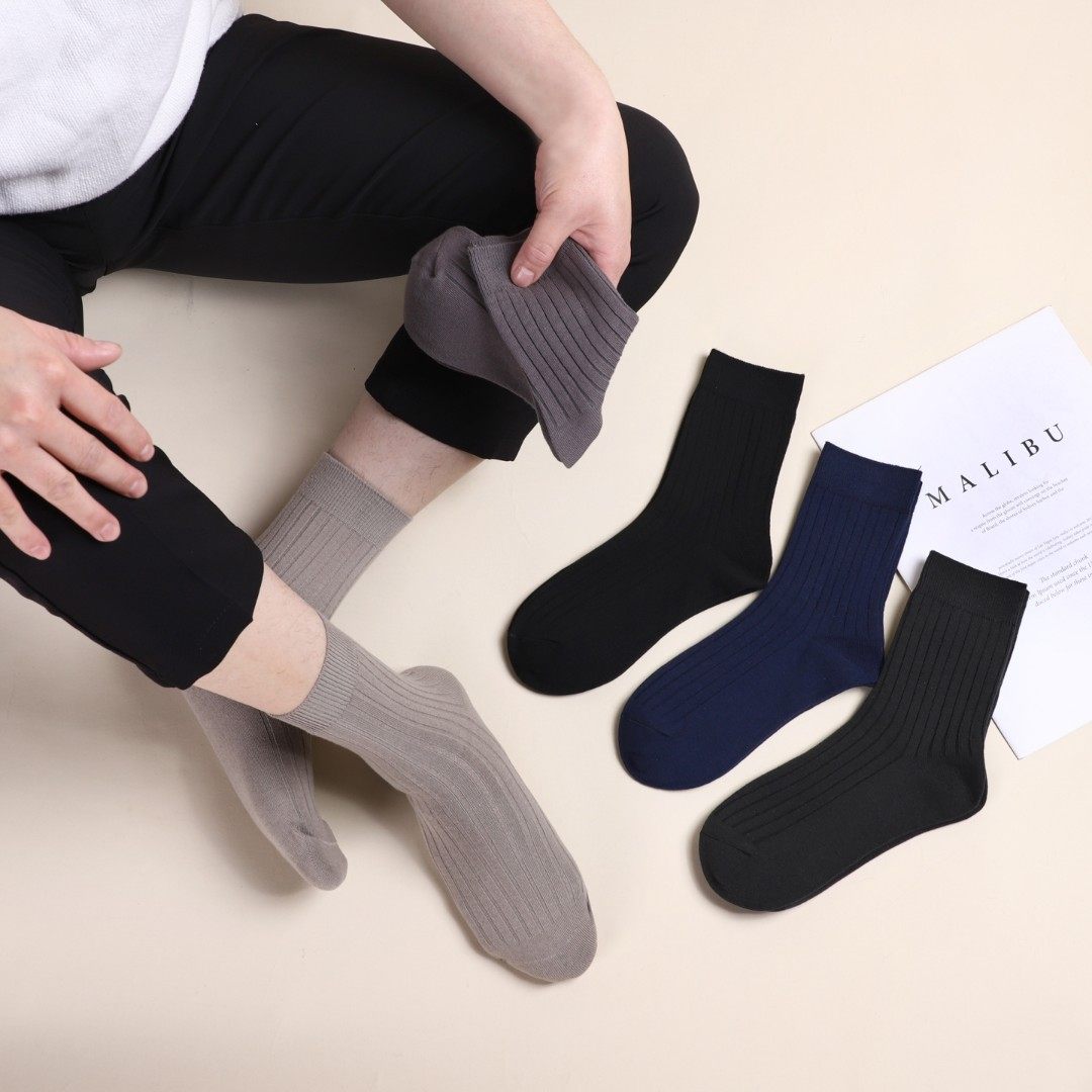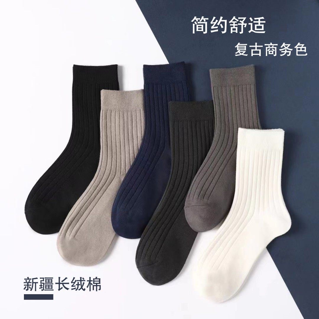 淘双针袜子男款中筒袜秋冬棉袜纯色日系运动休闲防臭男士商务袜长袜