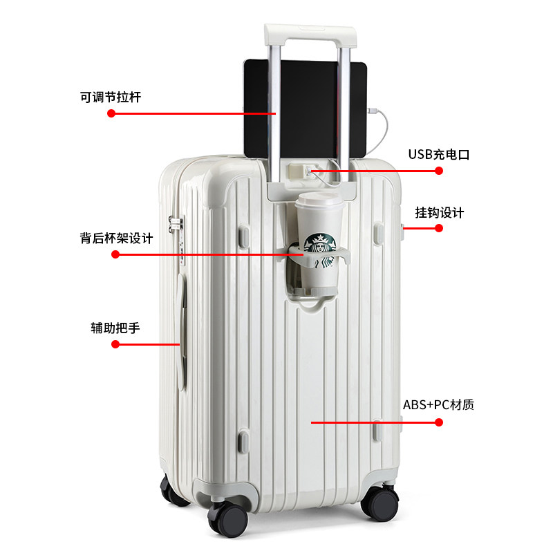 前置开口宽拉杆行李箱女多功能24寸耐用密码旅行皮箱子大容量26男