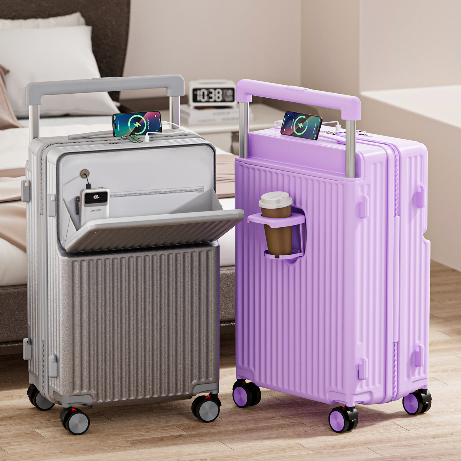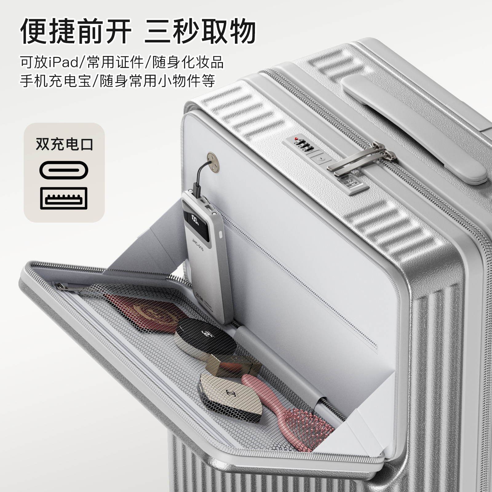速腾前侧开盖行李箱女一体式大深仓20寸拉杆箱旅行箱登机箱24寸男