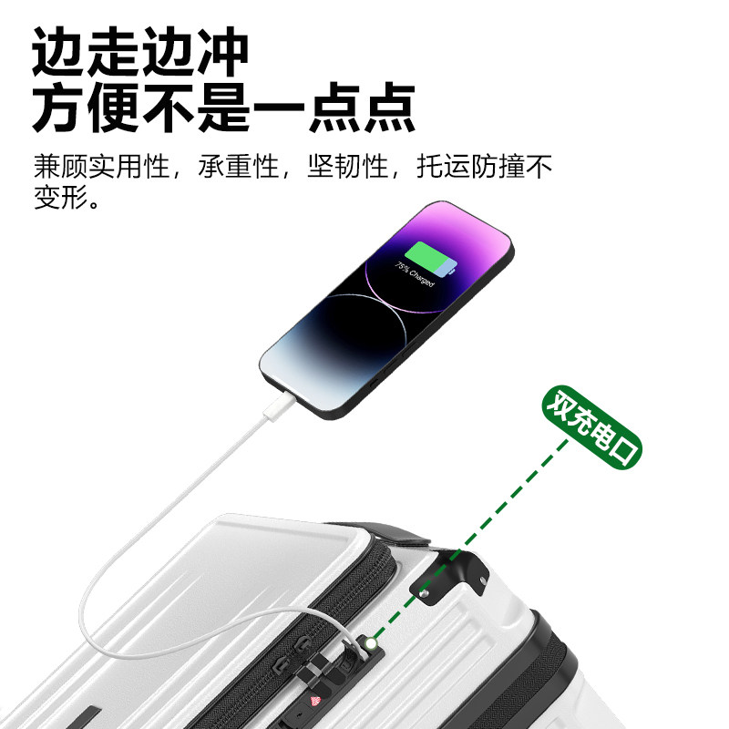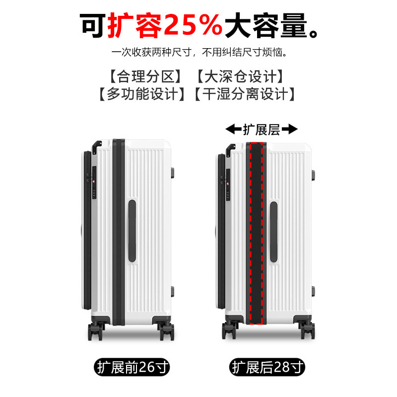 前置开口宽拉杆行李箱女多功能24寸耐用密码旅行皮箱子大容量26男