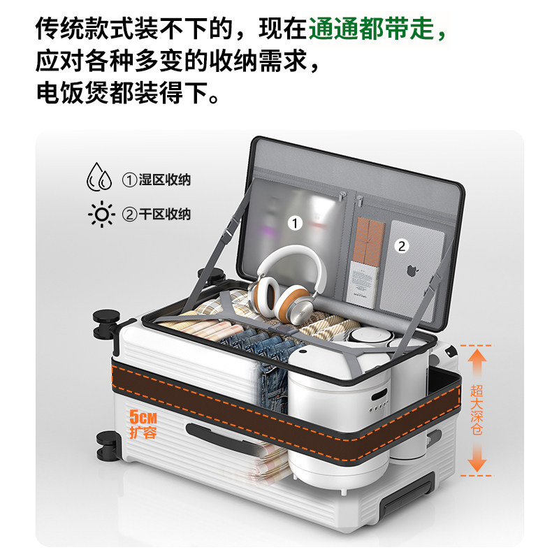 淘速腾前侧开盖行李箱女一体式大深仓20寸拉杆箱旅行箱登机箱24寸男