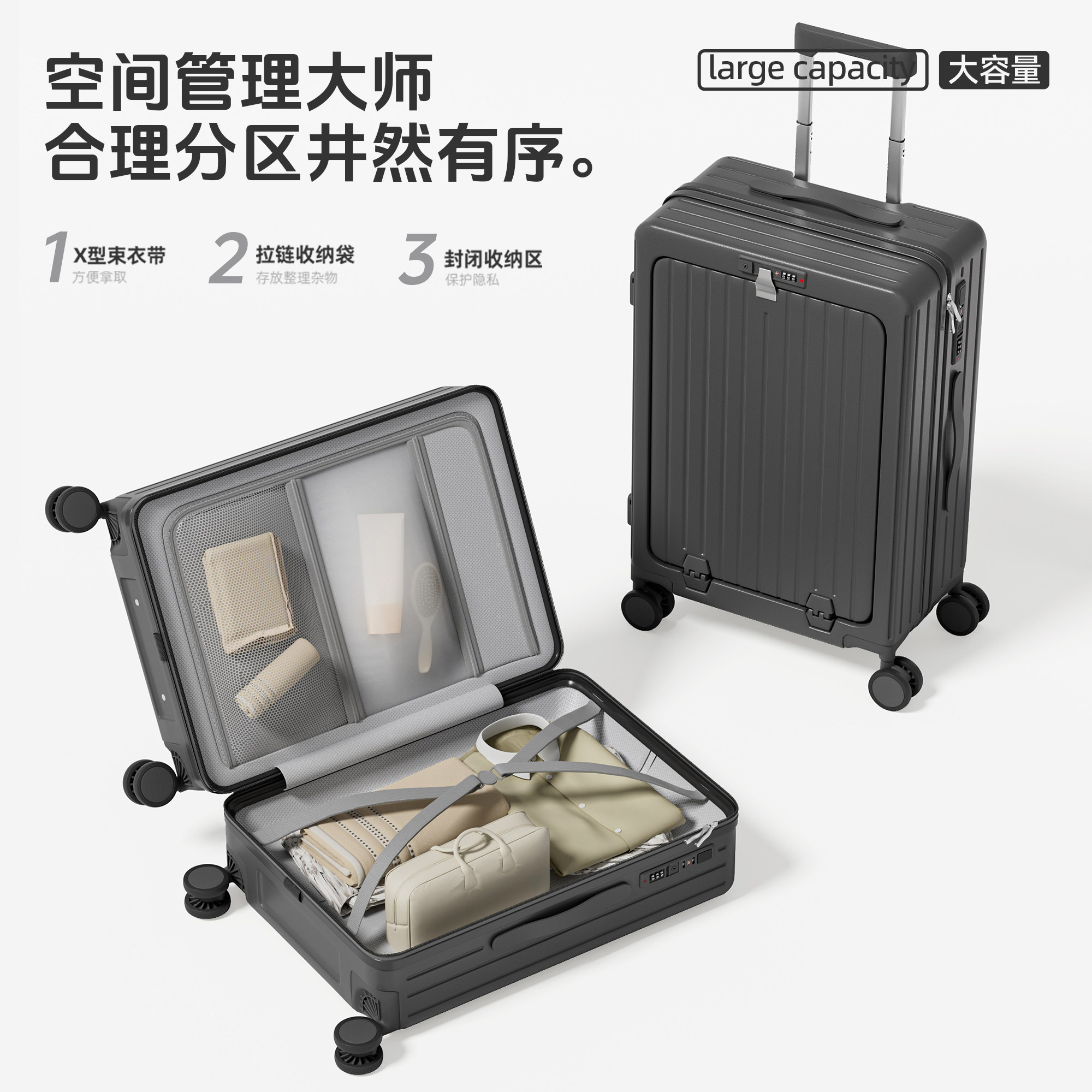 天前置开口深仓大容量行李箱2025年新款宽拉杆箱学生密码旅行登机箱